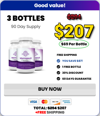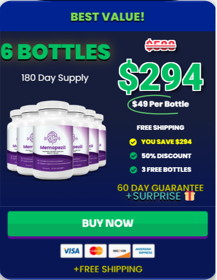This is the fun part. Click on one of the packages above. Enter your order details on our secure checkout page. After you’ve finished we’ll get your Memopezil shipped out to you straight away. Order 3 bottles or 6 bottles and get free shipping.